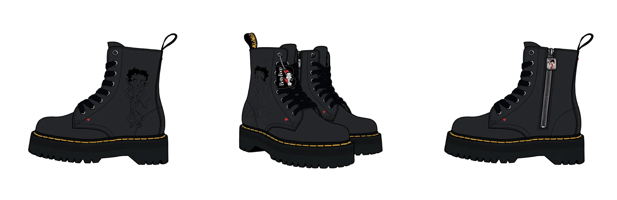 Kilogramme Animation Studio created a 2D mixed media ad for the Dr. Martens X Betty Boop collaboration. The film blends Betty Boop archival footage and new original animation, which features the cartoon character showing off the new Dr. Martens footwear. I produced the cartoon renditions of the new shoe collection that Betty Boop displays in the clip.