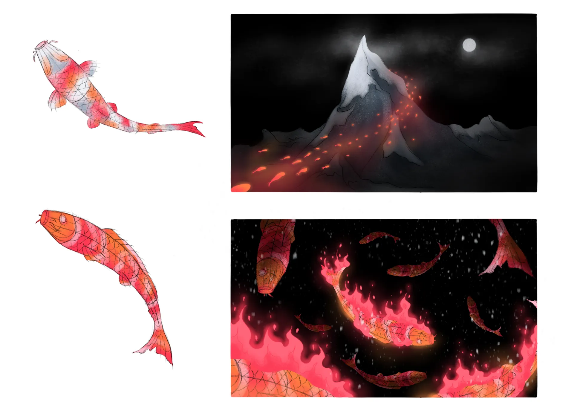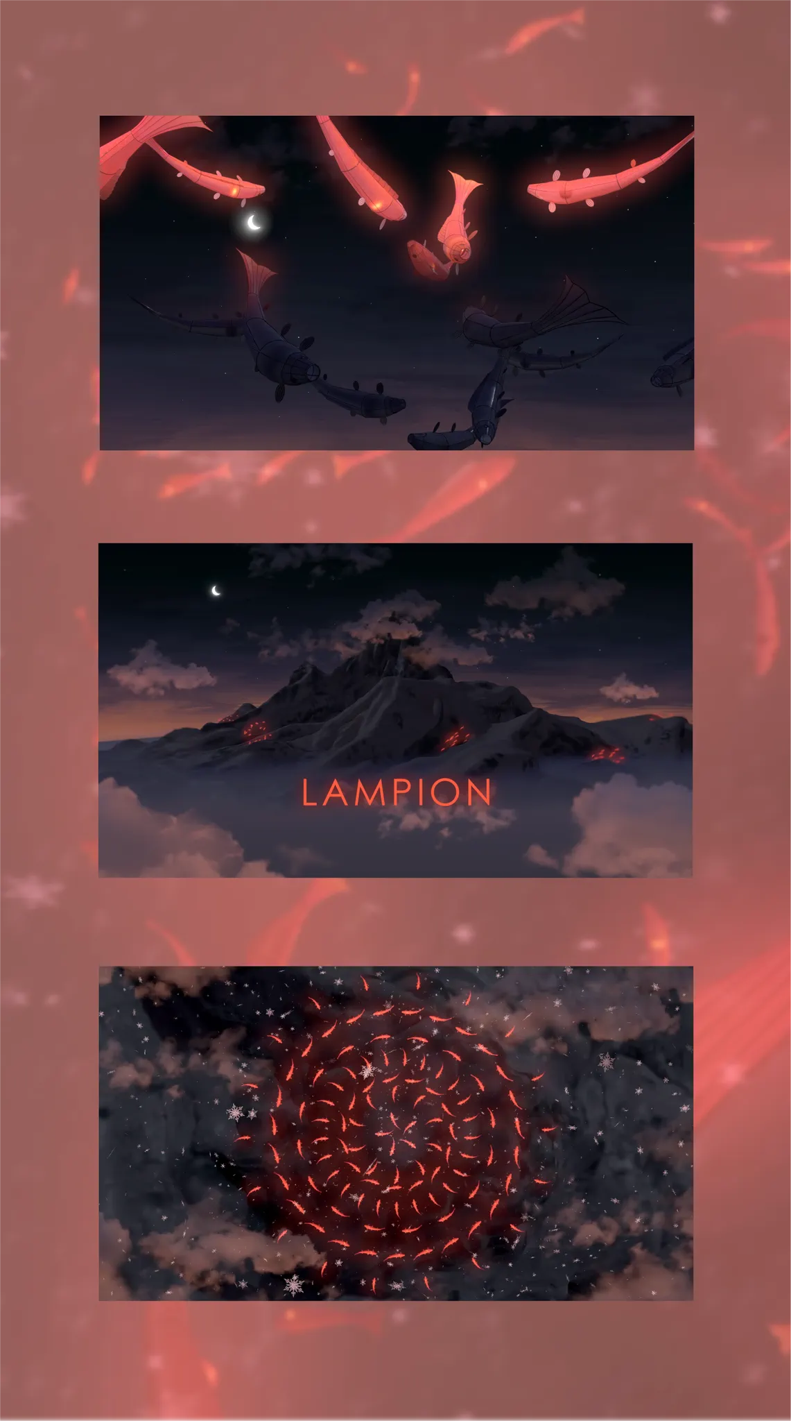 A 3D animated film about the hazardous mountain ascent of a swarm of lantern Koi fish