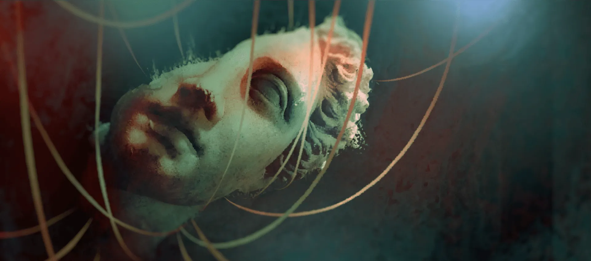 When compositing I laid out the 2D elements in a three dimentional environment and even chopped up the statues to create a parallax effect. The Minotaur shadow is being cast by a 2D cut-out and a light source placed behind a camera. To add further motion I added some layers of texture that move over the rest of the scene.