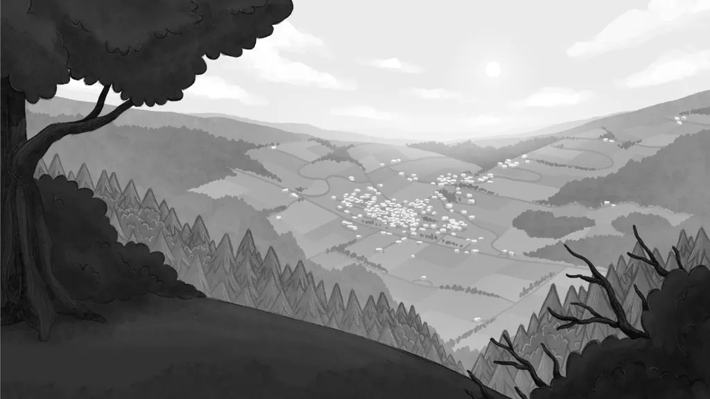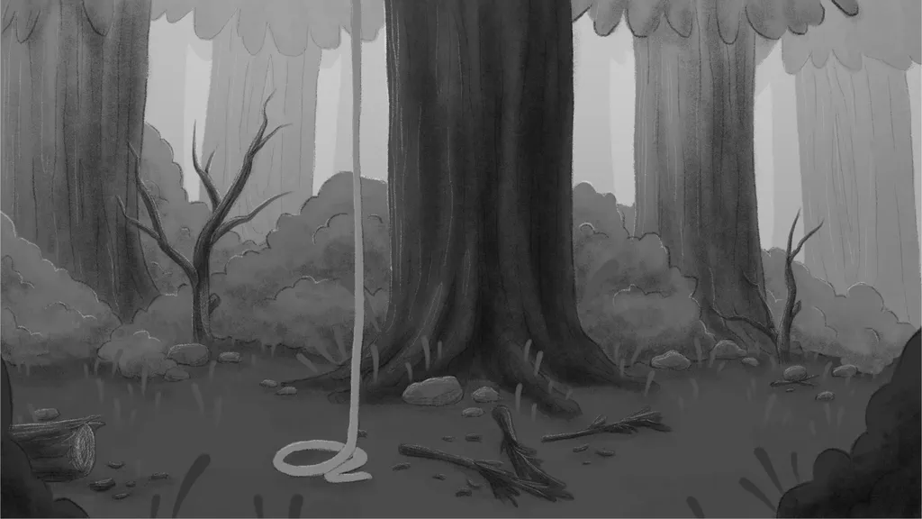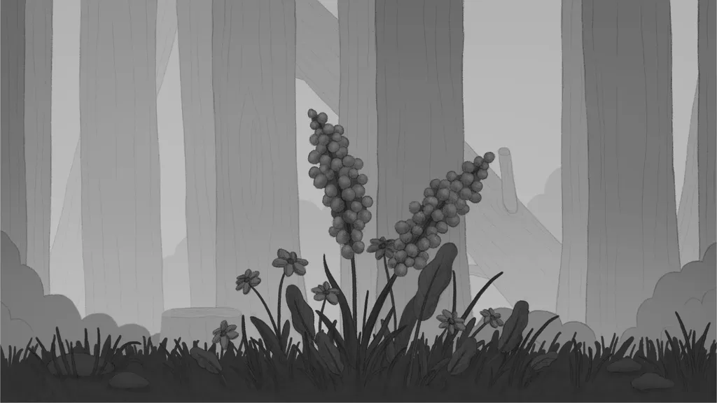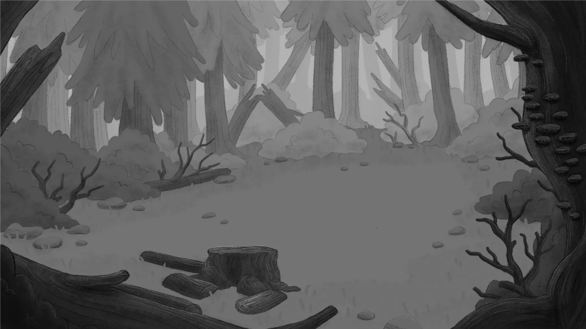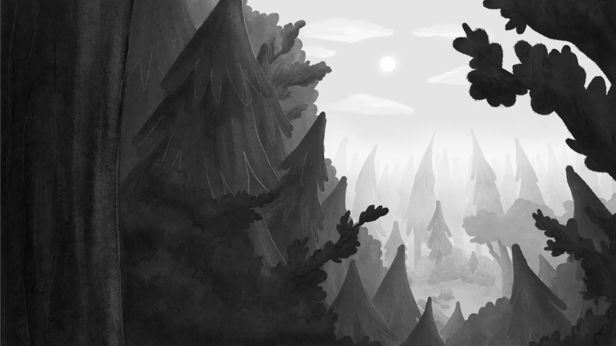 These are some backgrounds I did for the film, emulating the art style developed by my collaborator, Devon. Since the colour script was still undergoing revisions, we created the environments in black and white.